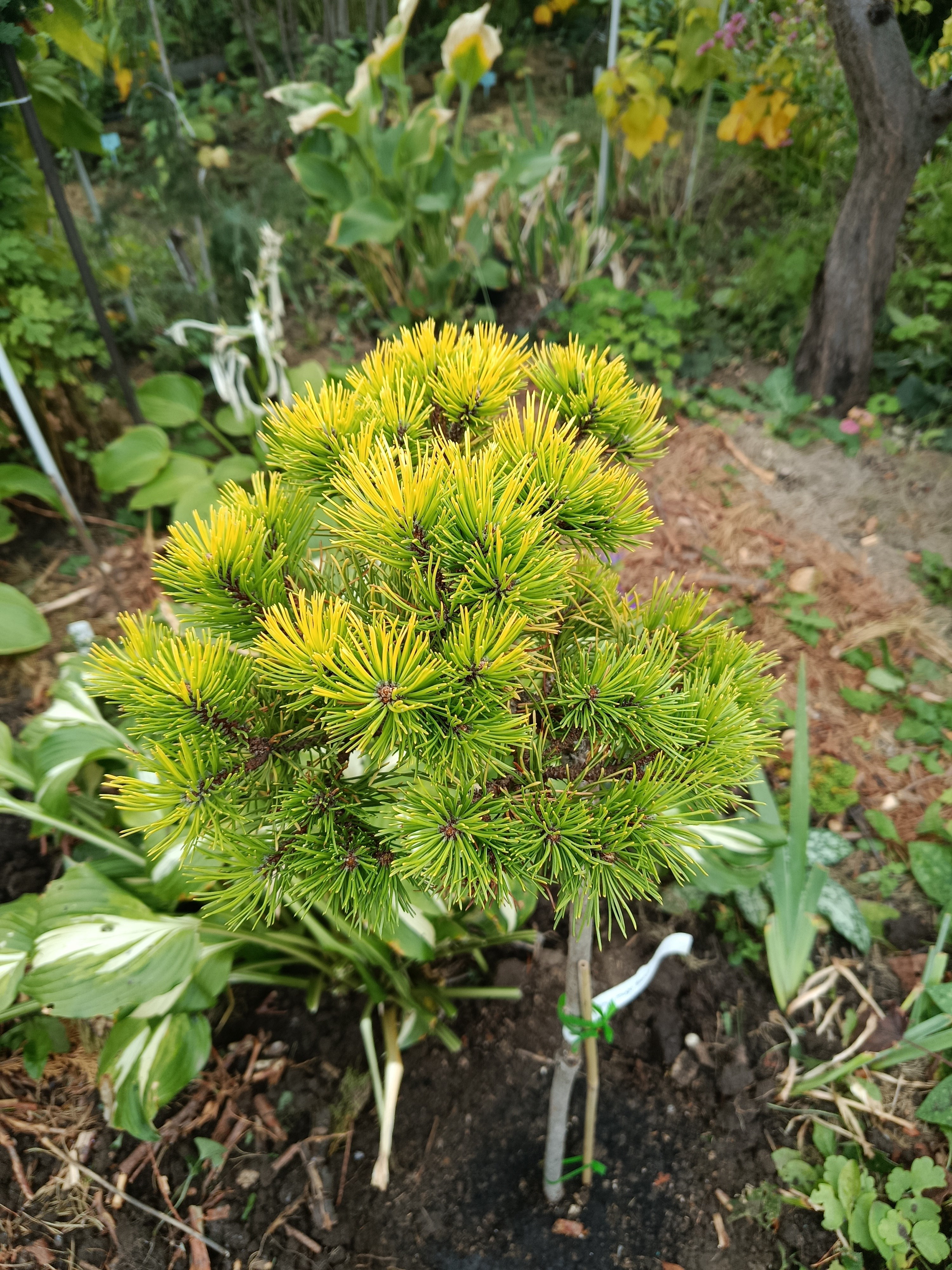Pinus mugo 'Bieruń' - красивое коллекционное растение. Новый Польский сорт горной сосны. Форма кроны - плотная, плоско-шаровидная. Желтая хвоя довольно короткая. Желтый цвет сохраняется круглый год! Темп роста очень медленный. 3-4 см в год.